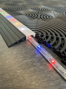 Fáciles de encajar en todas las baldosas SwissDeck, con o sin iluminación LED.